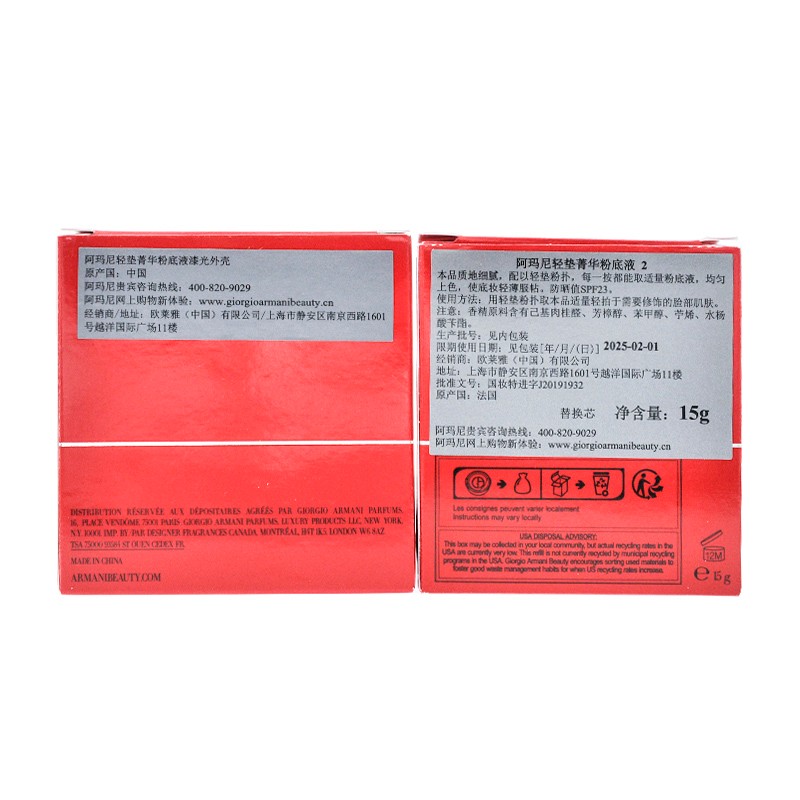 Armani 阿玛尼轻垫菁华红气垫SPF23(15g)2#象牙白-漆光外壳