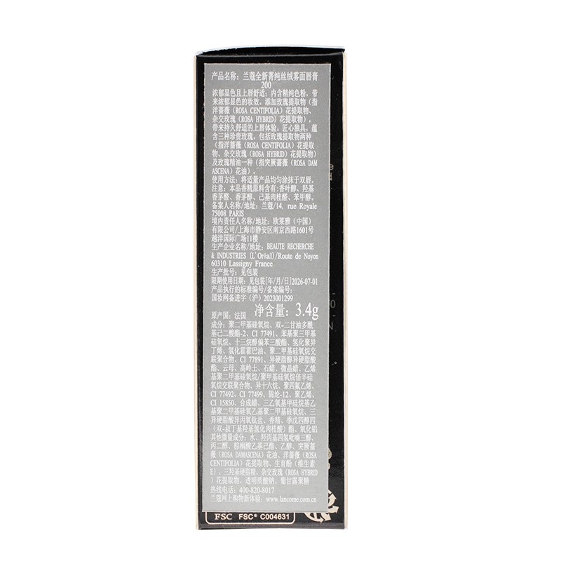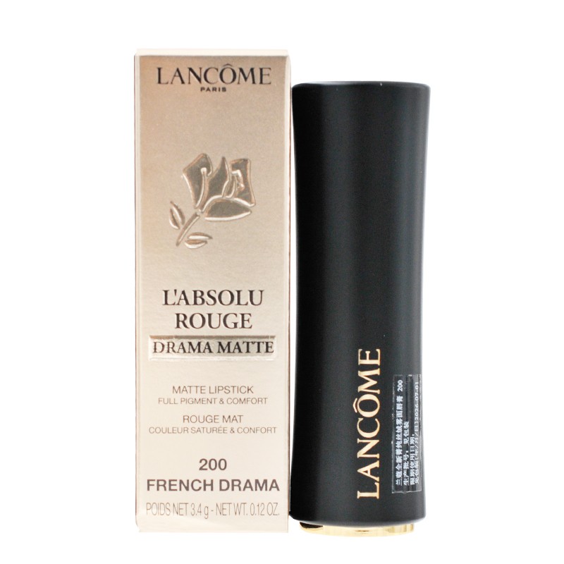 Lancome 兰蔻全新菁纯丝绒雾面唇膏/口红(3.4g)200#DRAMA棕-黑金管小蛮腰